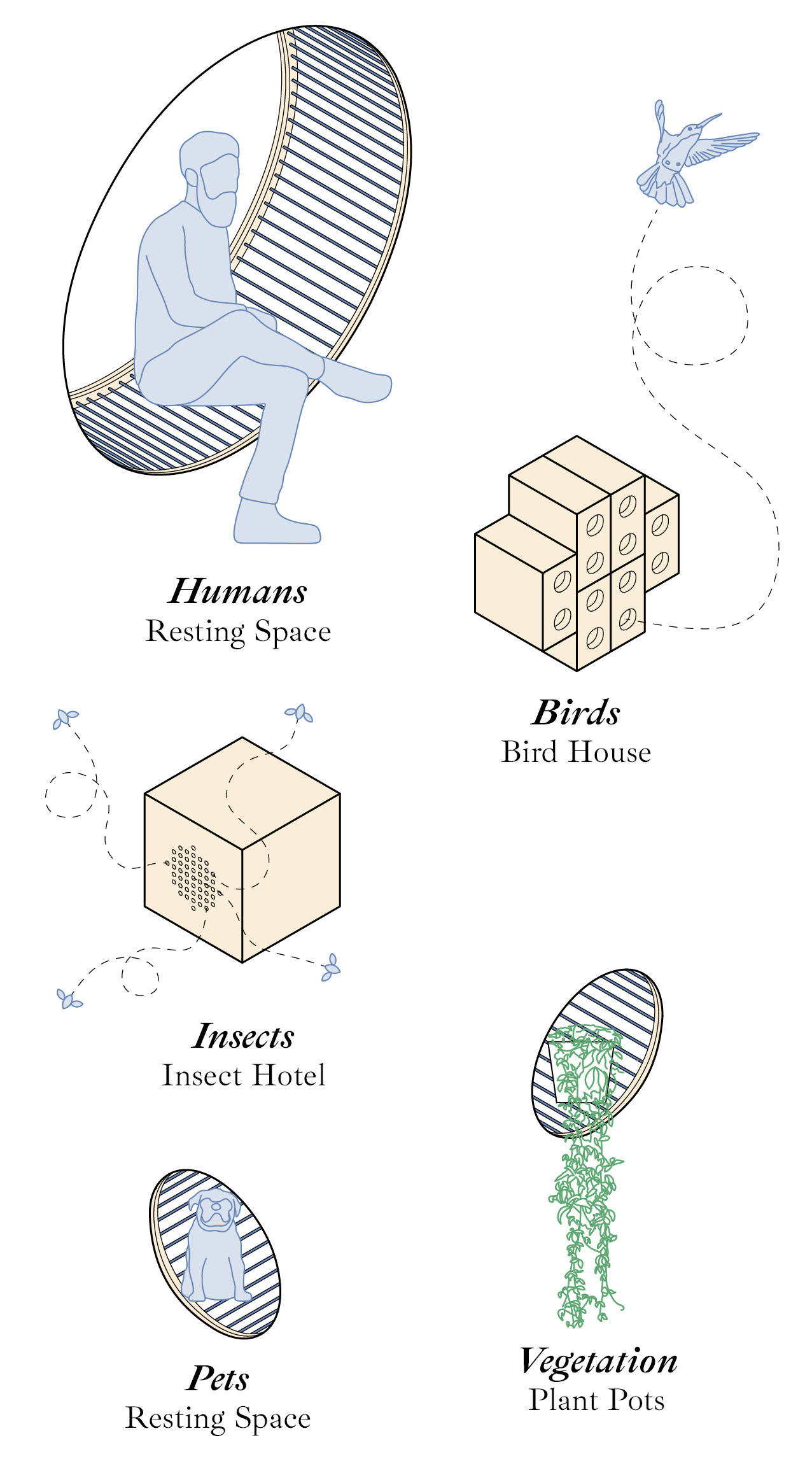 The wall comprises a series of nooks and crannies that favor social interaction and can be used by human agents living in the city, and by non-humans who reside in the Ebro river.